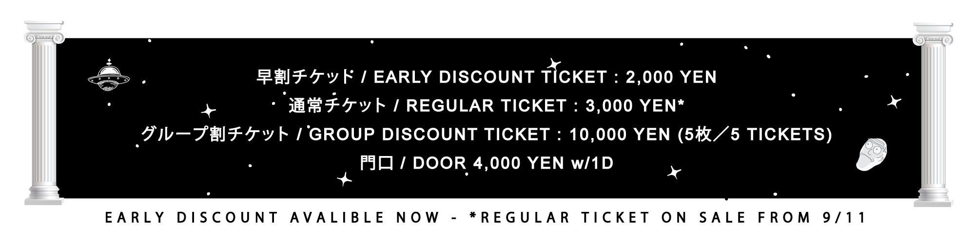 -当日、イベントのリストバンドを受け取るため、チケット所有者はチケットの購入を確認するためIDの提示を求められますのでIDの用意をお願いします。